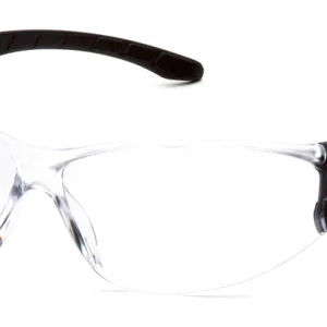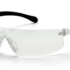 One-piece wraparound lens.