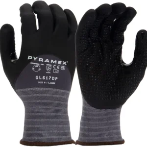 ANSI/ISEA 105CUT A4 | ABRASION 4 | PUNCTURE 4EN388ABRASION 4 | CUT X | TEAR 4 | PUNCTURE 3 | CUT TDM-100 D Type: Dipped Glove Material: Micro-Foam Nitrile Dots: Nitrile Smooth Liner:13 Gauge PMXTECK HPPE Cuff: HPPE + Latex Elastic Micro-foam nitrile coating on palm and fingers offers an excellent grip on dry or wet surfaces by channeling liquids away.13 gauge PMXTECK HPPE cut-resistant liner delivers cool comfort for all-day wear. Nitrile dots increase durability and grip.Reinforced thumb reduces stress in high-wear area.Knit cuff creates a snug fit to keep out debris. Dark liner and coating hide stains.