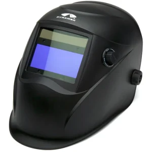 Leadhead.Auto Darkening Welding Helmet 9-13 stepless variable shade. 3.858″ x 3.425″ (98 x 87 mm) view area. Manual internal controls.Superior comfort with pivot style headgear.Made of high-impact resistant nylon. Four independent arc sensors in a staggered design to deliver the most reliable arc detection. Cutting and grinding modes. High speed lens 1/30,000 second. Powered by solar cells and replaceable lithium-battery. Includes magnification lens holder. Fully adjustable nylon suspension.